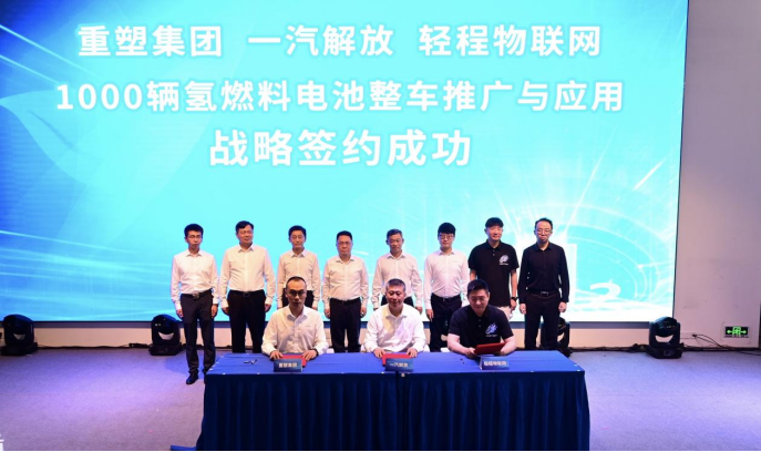 在順利交車的基礎(chǔ)上,三方就深化氫燃料電池在商用車方面的應(yīng)用和市場(chǎng)推廣達(dá)成進(jìn)一步合作意向。一汽解放新能源事業(yè)部副總經(jīng)理李玉峰、胡哲、劉可飛作為三方代表,簽署了“一汽解放&重塑集團(tuán)&輕程物聯(lián)網(wǎng)1000輛氫燃料電池整車推廣與應(yīng)用戰(zhàn)略”協(xié)議。該協(xié)議的成功簽署,象征著三方在未來(lái)將強(qiáng)強(qiáng)聯(lián)合、攜手并進(jìn),共同推動(dòng)新能源商用車產(chǎn)業(yè)長(zhǎng)期、穩(wěn)定和可持續(xù)發(fā)展,加快推進(jìn)燃料電池商用車項(xiàng)目落地,為我國(guó)“雙碳”目標(biāo)的達(dá)成和實(shí)現(xiàn)中國(guó)汽車產(chǎn)業(yè)可持續(xù)發(fā)展貢獻(xiàn)力量。
