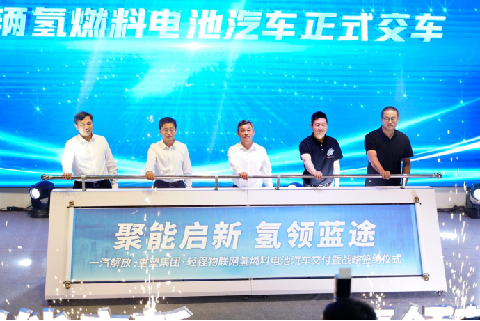 8月16日,以“聚能啟新 氫領(lǐng)藍(lán)途”為主題的一汽解放&重塑集團(tuán)&輕程物聯(lián)網(wǎng)氫燃料電池汽車交付暨戰(zhàn)略簽約儀式在上海隆重召開。上海市嘉定區(qū)副區(qū)長(zhǎng)李峰,一汽解放總經(jīng)理、黨委副書記吳碧磊、黨委副書記、工會(huì)主席張國(guó)華,重塑集團(tuán)董事長(zhǎng)兼總裁林琦、首席運(yùn)營(yíng)官胡哲,輕程物聯(lián)網(wǎng)總經(jīng)理劉可飛,中石化氫能源(上海)總經(jīng)理劉可成出席本次活動(dòng)。上海嘉定區(qū)、一汽解放、重塑集團(tuán)等相關(guān)領(lǐng)導(dǎo)、合作伙伴、員工代表以及來(lái)自全國(guó)的媒體記者共同見證了交付、簽約的重要時(shí)刻。