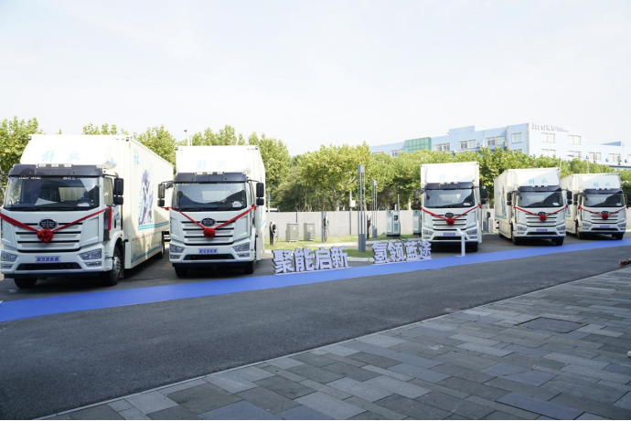 本次交付的18噸燃料電池重卡,由一汽解放攜手重塑集團(tuán)共同打造,雙方用了不到半年的時(shí)間,完成了100臺(tái)汽車的整車開發(fā)、批量生產(chǎn)與下線合格交付。車輛具備加氫快、低噪音、低氫耗、零排放等優(yōu)勢(shì),與傳統(tǒng)油車和純電物流車相比具備綠色無(wú)污染、續(xù)航里程長(zhǎng)的優(yōu)勢(shì),該批車輛將用于城郊及城際干線配送場(chǎng)景,滿足快遞、電商等終端客戶的需求。