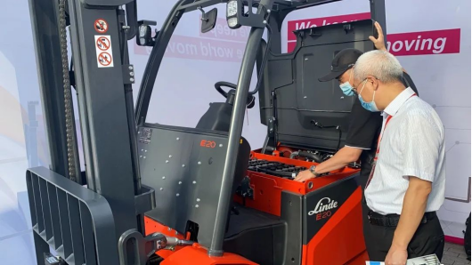 現場,林德展示的新款電動平衡重叉車以硬核實力出眾吸睛,整合德國凱傲50年電車經驗,能夠精確控制按需供能,可以確保酒類用戶的高效、穩定生產。該車動力強勁、續航時間更長久,滿載爬坡18%,大大提高效率、節約時間。另外,針對酒類行業搬運需求量大的特征,林德平衡重叉車還可以選配雙貨叉,一次搬運兩托盤貨,真的耐用可靠。