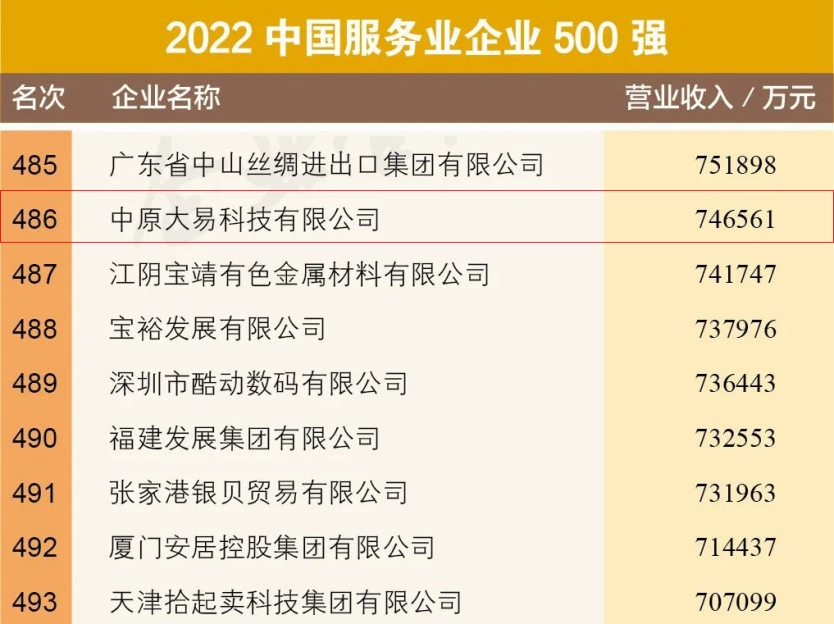 9月6日上午,中國企業聯合會、中國企業家協會在京舉辦新聞發布會,向社會發布了“2022中國服務業企業500強”榜單。大易科技成功入選,成為河南省唯一上榜的數字貨運服務企業,獲得了《河南發布》、《河南日報》、《大河報》、《平頂山日報》等媒體特別關注報道。