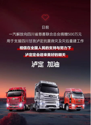 每次災(zāi)難的前面,都少不了卡友運(yùn)送物資的身影;每個卡友出現(xiàn)的地方,都少不了一汽解放服務(wù)人員守護(hù)伴行。