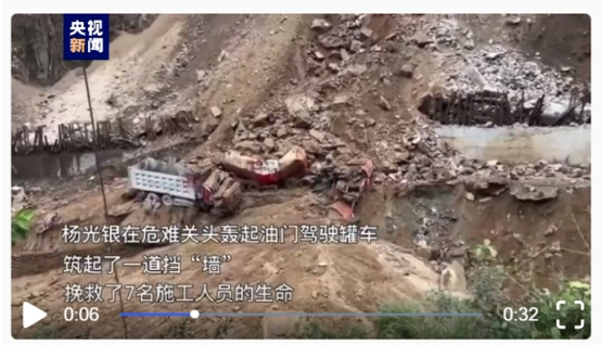 同在現場的修路工人劉剛講到,“當時看到山上的飛石不斷落下,幸好楊師傅把車擋在了路邊,為我們爭取了逃離時間,不然我們今天全部都要埋在下面了,真是謝謝楊師傅,他是我們的救命恩人啊!”