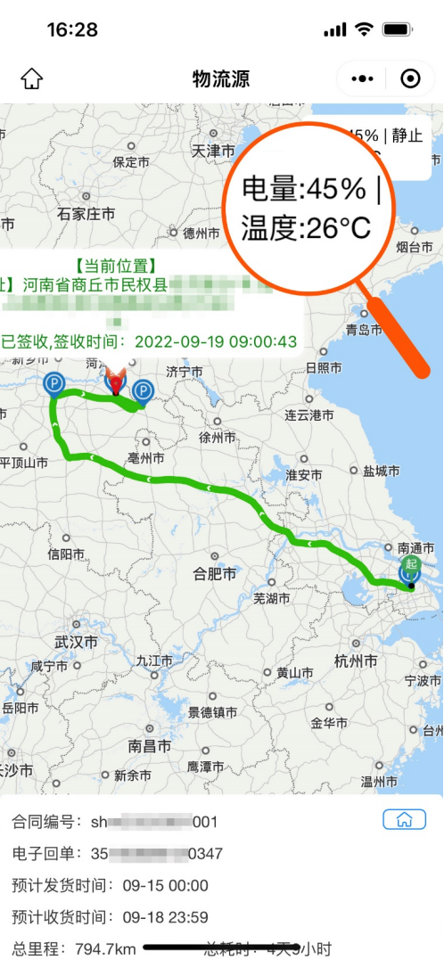 物流源的貨物跟蹤設(shè)備——電子回單(冷鏈產(chǎn)品),綁定醫(yī)藥品訂單運輸,智能定位及自動溫度監(jiān)測技術(shù),實時記錄醫(yī)藥品運輸?shù)钠疬\時間、運輸軌跡、溫度、到達及簽收時間。醫(yī)藥品企業(yè)、承運公司及收貨方,可隨時通過微信小程序查詢實時在途信息及運輸溫度,實現(xiàn)全程的可視化溫度監(jiān)控。