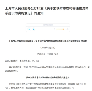 9月19日,上海市人民政府發(fā)布了《關(guān)于加快本市農(nóng)村寄遞物流體系建設(shè)的實施意見》一文。文中提到上海市將推進農(nóng)村郵政快遞綠色化,郵政、快遞新增配送車輛全部使用新能源車或清潔能源汽車。
