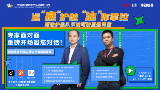 此次解放鷹途護航隊節(jié)油直播課堂,邀請到行業(yè)專家、資深節(jié)油駕駛講師等專業(yè)人士重磅加入,講師將從不同視角切入,助力卡友構(gòu)建更加完整的節(jié)油知識體系。首場直播課堂將由任海軍、張立鑫兩位行業(yè)專家開講,屆時兩位專家將基于行業(yè)觀察,與卡友暢聊行業(yè)現(xiàn)狀、未來趨勢以及應對方案等硬核內(nèi)容。