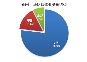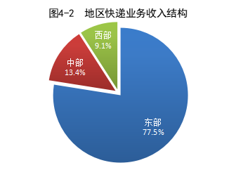 1-10月,東、中、西部地區(qū)快遞業(yè)務(wù)量比重分別為76.9%、15.6%和7.5%,業(yè)務(wù)收入比重分別為77.5%、13.4%和9.1%。與去年同期相比,東部地區(qū)快遞業(yè)務(wù)量比重下降1.4個百分點,快遞業(yè)務(wù)收入比重下降0.7個百分點;中部地區(qū)快遞業(yè)務(wù)量比重上升1.2個百分點,快遞業(yè)務(wù)收入比重上升0.5個百分點;西部地區(qū)快遞業(yè)務(wù)量比重上升0.2個百分點,快遞業(yè)務(wù)收入比重上升0.2個百分點。