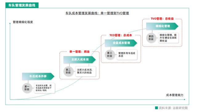 “白皮書”的最后,編者們凝練指出對未來“節油”發展的思考:那就是從燃油管理(單一成本項)到 TCO(全生命周期成本)再到TVO(全生命周期收益)。