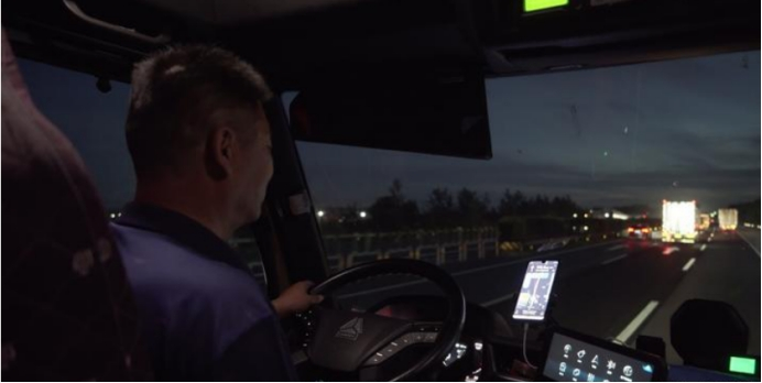 此后的幾個小時行駛,劉師傅為了排解旅途的寂寞打開了車輛的中控大屏,使手機互聯功能聽起了歌曲。劉師傅為了更加放松甚至脫掉了鞋子,很有點電影中賽車高手的樣子。