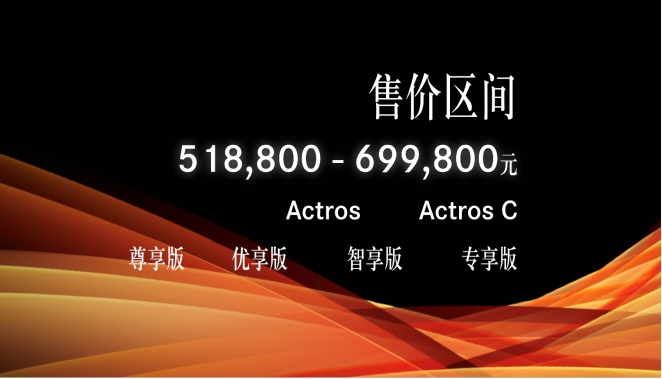 伴隨著Actros和Actros C公路牽引車的重磅亮相,官方正式對外公布兩大系列、八款推薦車型的市場售價區間為 ¥518,800 - ¥699,800,發布了梅賽德斯-奔馳特色的可靠品質、領先節油、智能安全、舒適駕乘四大核心產品力,以及國產奔馳重卡精心打造的全生命周期智慧服務生態系統,助力物流用戶率先跨入TCO 2.0時代。