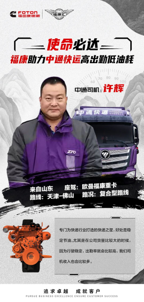 這種統一所波及的不僅是行業和公司,就連跑了十幾年長途運輸的中通司機——許師傅也深有感觸:“我們公司使用的都是采用福康發動機的歐曼520自動擋,聽說是專門為快遞行業打造的快遞之星,好處是穩定節油。尤其是在公司貨量比較大的時候,這種發動機的優勢就體現出來了,因為行駛穩定,出勤率就會比較高,我們司機收入也會比較多。”在保障高出勤率的情況下節省油耗,無論是對公司而言還是對司機個人而言,都是一種增加利潤的和諧統一。