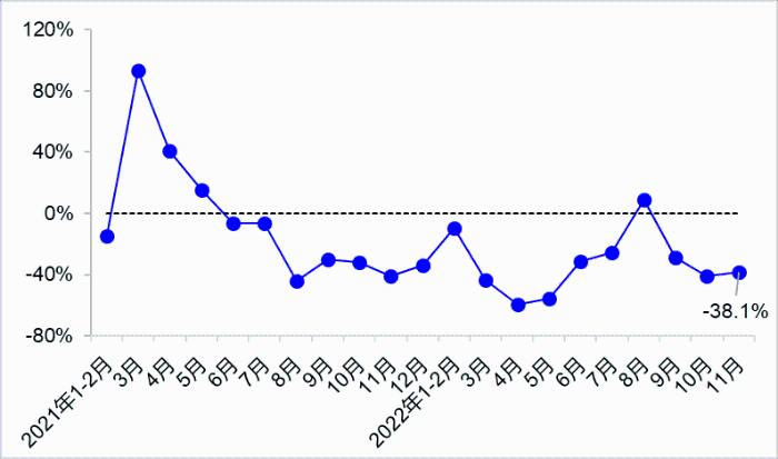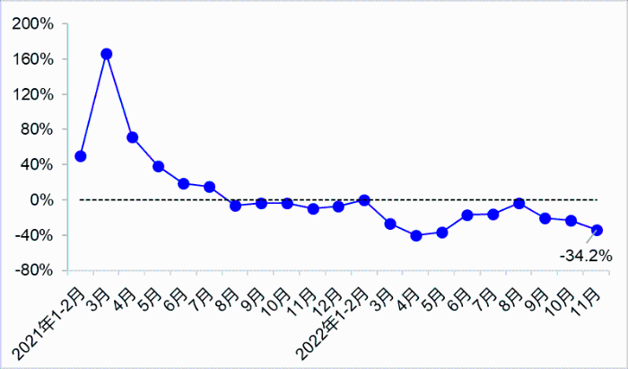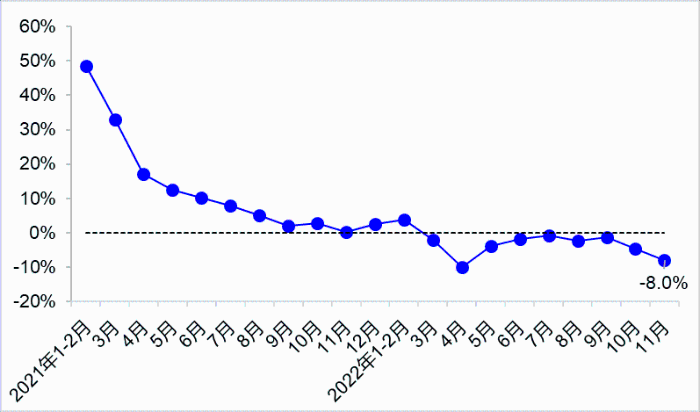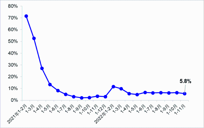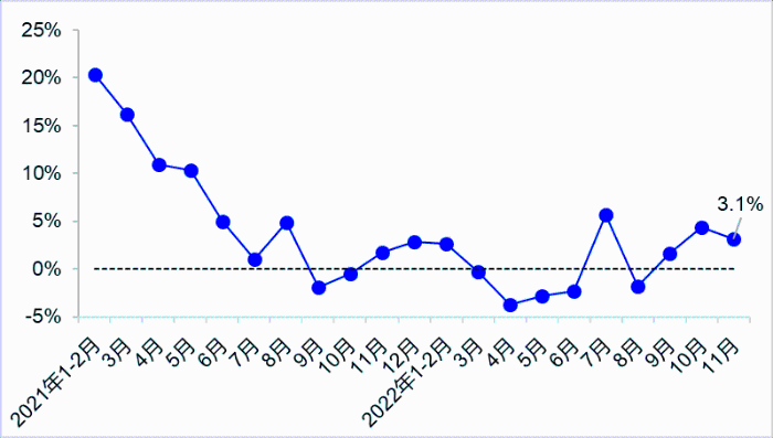 11月,受國內多數省份疫情持續發生等因素影響,貨運量延續下降態勢,客運量持續低位,港口貨物吞吐量增速有所放緩。交通固定資產投資維持高位運行,繼續保持增長。
