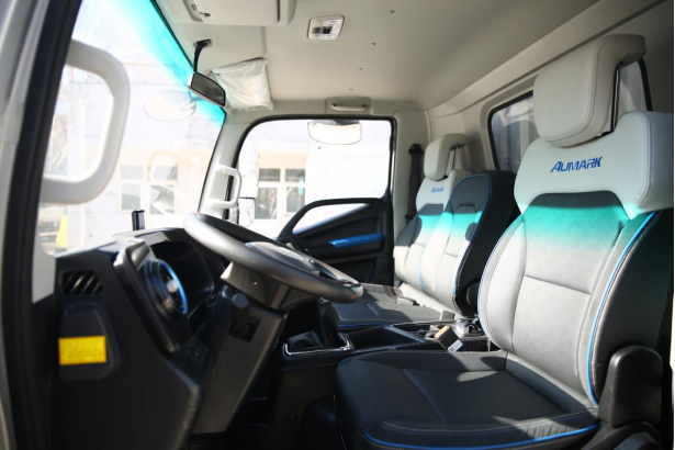 全新一代歐馬可超級輕卡在舒適駕乘方面也是下足了功夫。升級的氣囊減震座椅讓車輛通過溝、坎路段極大的減輕顛簸感,減少長時間駕駛造成的疲勞,透氣的面料和優質海綿填充以及座椅腰托的優化,使舒適性、透氣性、包裹性都得到極大提高,全行業最優的NVH設計打造的靜謐座艙,怠速噪聲≤45dB(A),讓駕駛更舒服,可以說開上一天也不容易腰酸背痛,極大的保證了運營效率。