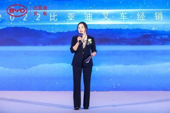 在美麗的杭州,于碧波蕩漾的錢塘江邊,比亞迪叉車再會高朋,本次大會現(xiàn)場,比亞迪叉車銷售總監(jiān)陳麗萍女士首先向在座來賓致歡迎辭。