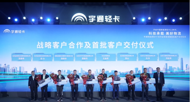 卓越的產(chǎn)品品質(zhì)、越級的性能表現(xiàn)使得宇通新能源輕卡T系列產(chǎn)品成為城市物流客戶高效、高價值、低運力成本解決方案的更優(yōu)選擇,一經(jīng)上市即贏得快遞配送、食品配送、醫(yī)藥冷鏈、供銷物流、搬家、專用車等多領(lǐng)域頭部客戶的高度認可與信賴。活動現(xiàn)場,宇通輕卡與北京金磚再生、北京金成亞信、道路運輸協(xié)會搬家與配送分會、北京京中亨通運輸、河北供銷物流、北京首佳物流、北京馬大姐食品、北京萬通利達物流等京津冀區(qū)域戰(zhàn)略客戶達成合作,并完成首批客戶車輛交付。