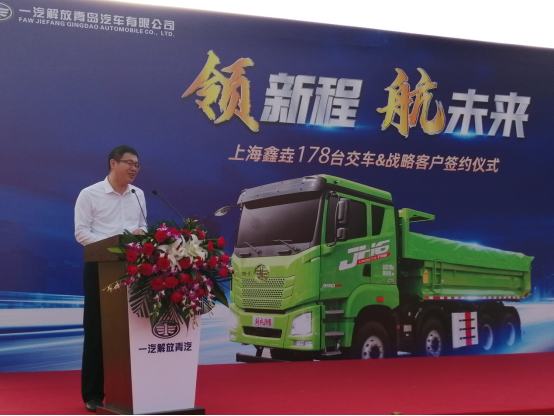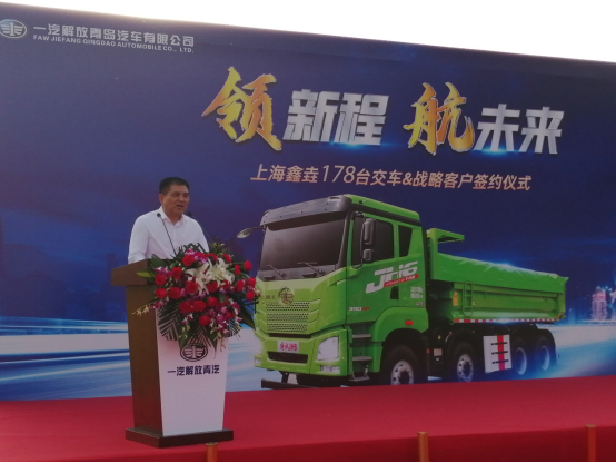 面對上海法規變革,青島整車事業部副總經理紀勝師表示:我們在上海渣土車市場并沒有獲得與我們行業地位相匹配的市場份額,借助2020年以來上海渣土運輸行業智能化、輕量化、標載化的發展契機,公司以世界級技術平臺為載體,以 “樹立民族品牌標桿”為使命,響應法規,理解需求,為上海市場帶來了JH6領航版渣土車。同時借青汽55周年之際,也為上海市場特推出六大極致服務,為客戶解決后顧之憂。