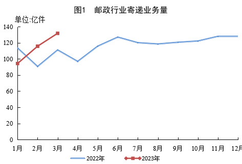 3月份,郵政行業寄遞業務量完成131.7億件,同比增長18.7%。其中,快遞業務量完成104.8億件,同比增長22.7%;郵政集團寄遞業務量完成26.8億件,同比增長5.1%。