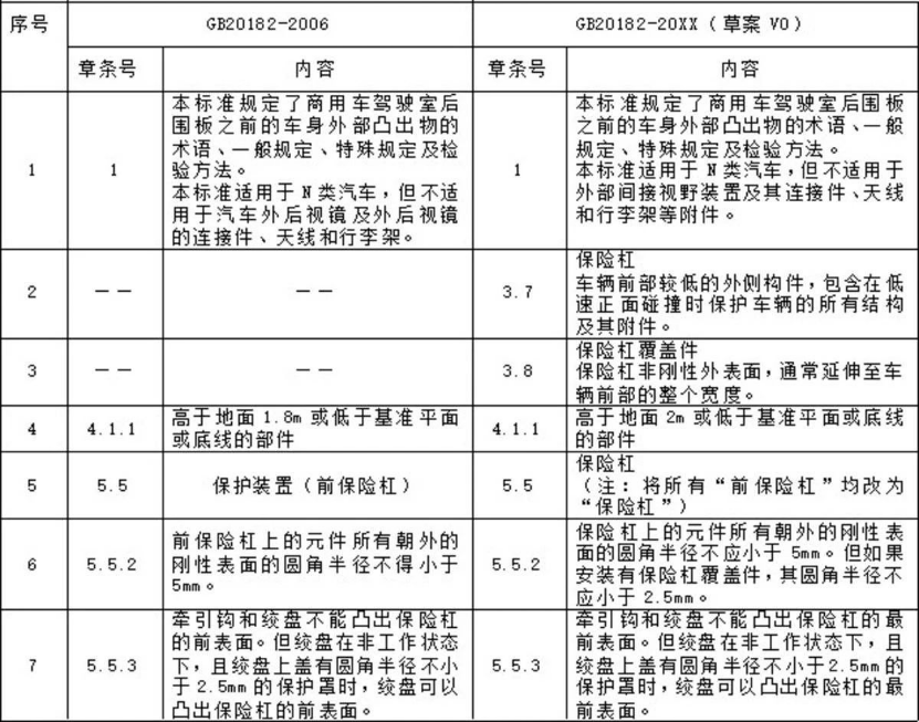 5月5日,工信部發(fā)布《商用車駕駛室外部凸出物》強(qiáng)制性國家標(biāo)準(zhǔn)征求意見稿,征求意見截止日期為2023年7月5日。變化主要體現(xiàn)在保險杠方面。