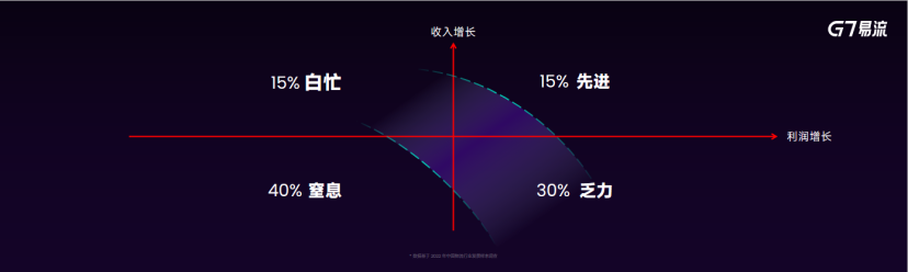 G7易流發(fā)現(xiàn),貨運經(jīng)營者經(jīng)過了新時代3年進(jìn)化之后,已經(jīng)重新拉開了距離。40%窒息的企業(yè)“量利齊減”,即收入和利潤在萎縮,甚至在賠錢;15%的企業(yè)“白忙”其實能掙錢但收入在下降,沒有能力控制成本費用;還有30%乏力的企業(yè)還躺在過去的貨源結(jié)構(gòu)上,但是還有時間和實力去發(fā)展新的貨源結(jié)構(gòu)。在大環(huán)境如此惡劣的情況下,仍有15%人發(fā)現(xiàn)了新的活法,這些企業(yè)實現(xiàn)“量利雙增”。G7易流將這類企業(yè)稱之為先進(jìn)貨運經(jīng)營者。