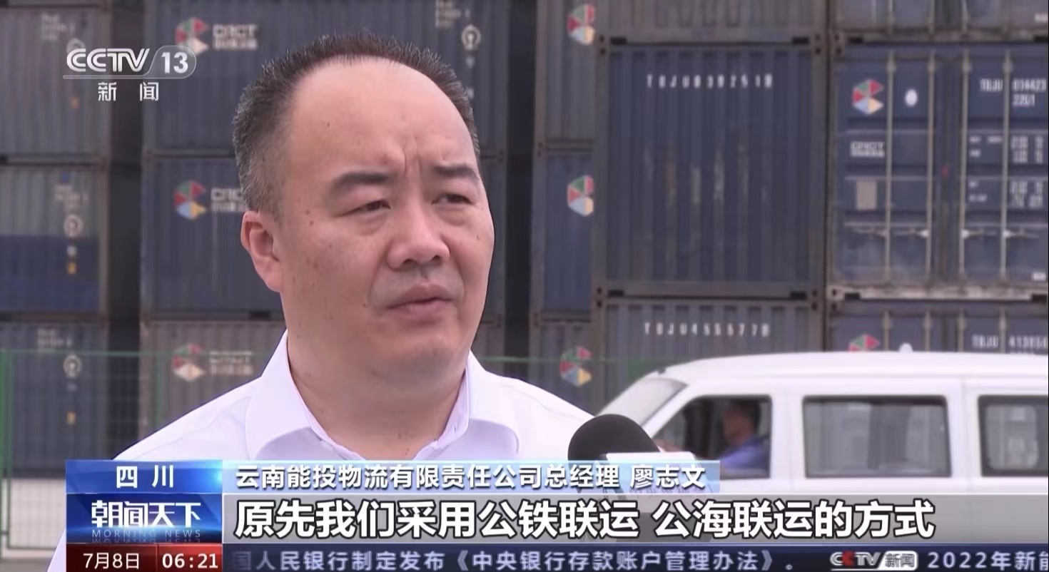 期間,云南能投物流作為本次首發貨物的貨主方,云南能投物流黨委副書記、總經理廖志文代表公司接受了中央電視臺等主流媒體采訪: