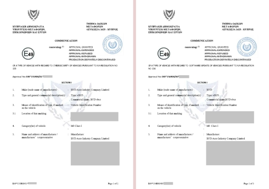 UN ECE R155(左)和R156(右)車型VTA證書