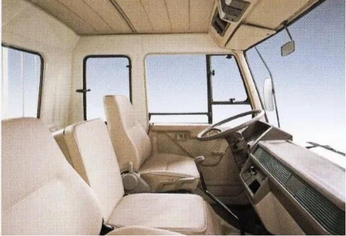 第三代解放車作為首次將車型由長頭轉為平頭的車型,駕駛室變得更加寬敞自由,也為之后的迭代升級埋下了伏筆。FK駕駛室內飾以柔和的米色(頂棚,門板)和棕色(儀表臺,地毯)為主色調,上淺下深。內設多調節功能的高靠背坐椅,600mm寬臥鋪,塑料地毯,大型球面后視鏡,暖風和除霜系統,選裝空調,軟化的儀表臺,隨方向盤前后調節聯動的組合開關和儀表,儀表盤刻度和指針為桔色,柔和清晰,眼感舒適。這款駕駛室在六平柴上得以成功應用,功不可沒,但寬度卻略窄。1996年,一汽完成了FM駕駛室的生產準備,相比原FK,加寬230mm,雨刮器增加至三個,臥鋪長度也隨之加長,駕駛室更寬敞舒適。