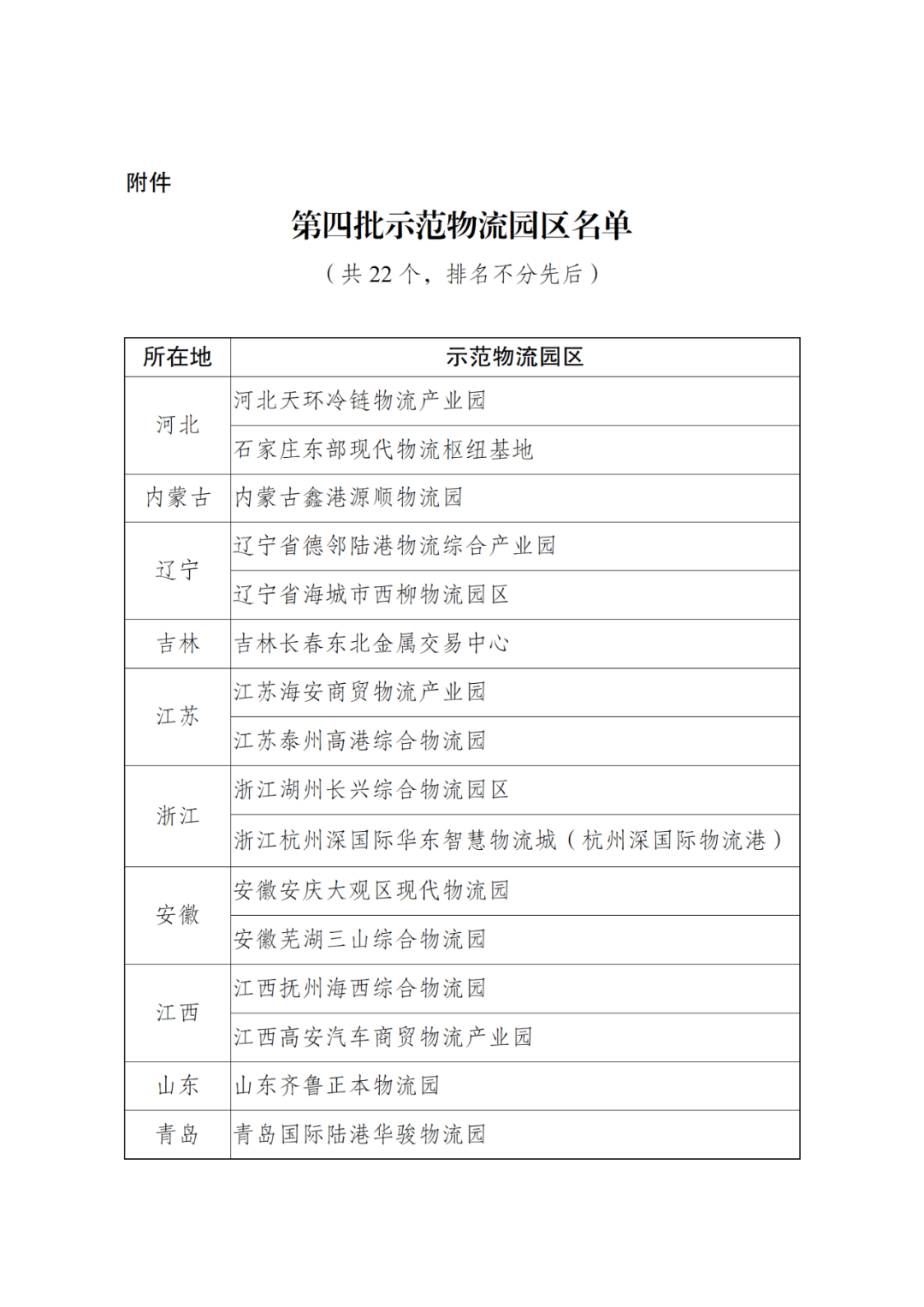 近日,國家發展改革委、自然資源部聯合印發《關于做好第四批示范物流園區工作的通知》,確定第四批22家示范物流園區名單,要求有關省級發展改革委、自然資源主管部門加強對示范物流園區的工作指導、政策支持和監測評估。