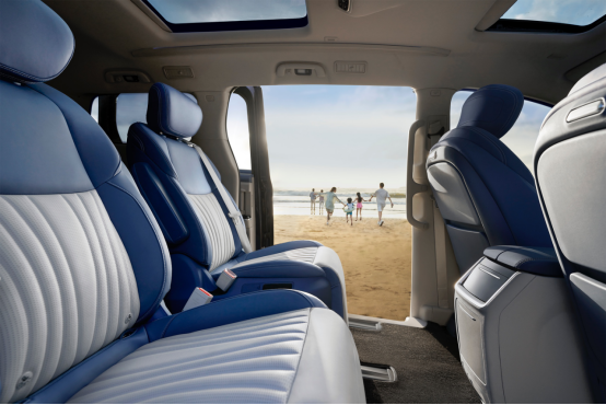 在MUSE架構“柔性空間”的賦能下,車身尺寸經過廣泛用戶調研并根據用戶場景定義的黃金尺寸:5200*1880*1830mm,后備箱常規空間700L,三排座椅放倒以后最大可擴展至2500L,能夠兼顧空間、靈活,以及多場景下的通過性。