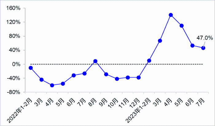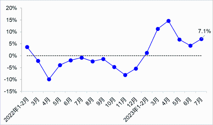 7月,完成營業性貨運量47.4億噸,同比增長7.1%,增速較6月回升2.8個百分點。其中,完成公路貨運量35.4億噸,同比增長8.0%;完成水路貨運量7.9億噸,同比增長6.9%。