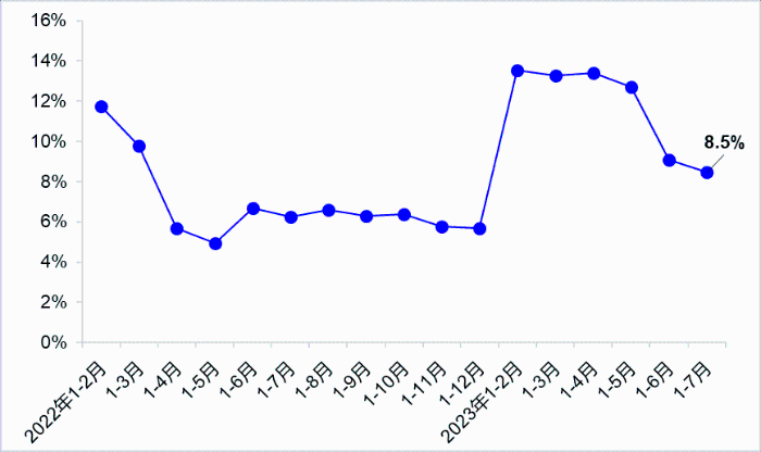 1—7月,完成交通固定資產投資2.2萬億元,同比增長8.5%。其中,完成公路投資1.6萬億元,同比增長8.1%;完成水運投資1105億元,同比增長25.7%。