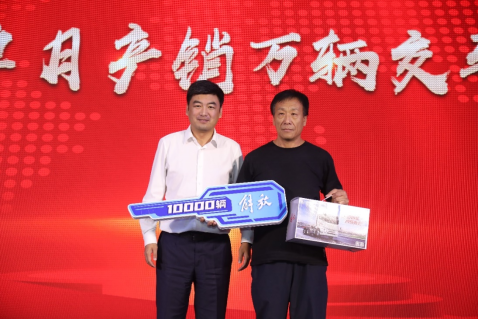 值得一提的是,青汽燃氣車在繼累計總銷量突破10萬輛之后,又獲得一個里程碑佳績,那就是單月產銷突破一萬輛。活動還邀請了第1萬輛燃氣車車主來到現場,并向他交付了象征榮耀的車鑰匙。