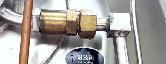 緊接著是進液閥,進液閥也叫進液單向閥,它是單方向流動的,有了它就可以阻止加入氣瓶內的液體流出了。