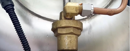 下部是經濟閥,氣瓶出廠時的壓力已經設定好了,一般如果說氣瓶的壓力高于經濟閥設定的范圍時,經濟閥自動開啟。此時,氣瓶內上部的氣體會經過經濟閥,進入到出液閥的管路,供發動機所用,同時氣瓶的壓力得到及時降低。當氣瓶的壓力低于經濟閥設定的范圍值時,經濟閥自動關閉,此時氣瓶內的液化天然氣經過出液閥繼續給發動機供氣。