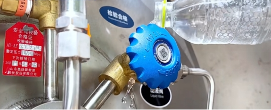 務必佩戴手套操作氣瓶上的出液閥、增壓閥、放空閥,避免低溫凍傷。順時針旋轉為關閉閥門,逆時針旋轉為開啟閥門。開啟閥門到最大角度時,建議回轉10-20度,以避免低溫結冰凍住閥芯。如果閥門被凍住,也不要用錘子和撬棍敲擊,應該用溫水持續澆注,融化冰霜后再對閥門進行操作。