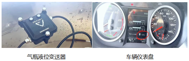 打開氣瓶蓋板,首先氣瓶最上部是氣瓶液位變送器,它的作用是將氣瓶剩余的氣量實時顯示在車輛儀表盤上。