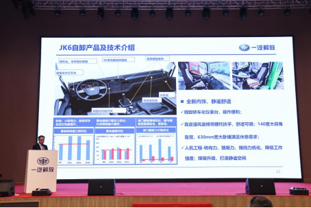 作為此次上市活動的主角,JK6自卸新品以多項突破刷新用戶期待。一汽解放青島中重型車產品線整車開放工程師單錦波為現場來賓詳細解讀產品優勢。