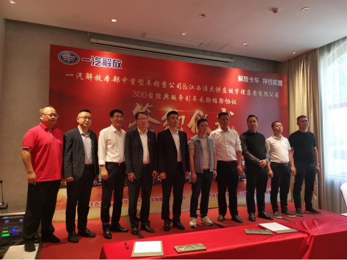2023年10月25日,一汽解放與江西浩大供應(yīng)鏈管理集團有限公司“300臺J6P經(jīng)典版牽引車采購合作框架簽約儀式”在江西萍鄉(xiāng)隆重舉行。江西浩大供應(yīng)鏈管理集團有限公司董事長陳建勇、江西浩大供應(yīng)鏈管理集團有限公司總經(jīng)理廖淀軍、江西浩大供應(yīng)鏈管理集團有限公司黨支部書記劉本金、江西浩大供應(yīng)鏈管理集團有限公司分廠廠長歐陽方亮、一汽解放本部中重型車銷售公司高級主任管理師楊天明、高安市海鑫汽車貿(mào)易有限公司董事長何海軍、一汽解放本部中重型車銷售公司贛湘鄂地區(qū)部部長徐紹熙、萍鄉(xiāng)三鑫達(dá)汽車貿(mào)易有限公司董事長徐定河、一汽解放本部中重型車銷售公司贛湘鄂地區(qū)部營銷主管姚金池等出席本次活動。
