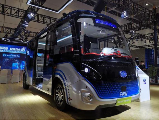 參展的還有一汽解放L4級自動駕駛巴士。整車采用全承載車身,設(shè)有7個豪華乘客座椅,空調(diào)常開下續(xù)航里程150公里,最高車速設(shè)置為69km/h。無人駕駛巴士配備了人臉識別、體溫檢測、客流統(tǒng)計系統(tǒng),裝置了空氣凈化系統(tǒng),及主被動安全設(shè)施。它的感知系統(tǒng)主要由雷達、攝像機、慣導(dǎo)天線組成,用來探測感知周邊物體并收集數(shù)據(jù)。這款產(chǎn)品的應(yīng)用場景非常廣泛,可用于各廠區(qū)、園區(qū)內(nèi)循環(huán)接駁,也可作為景區(qū)、校園游覽觀光車。