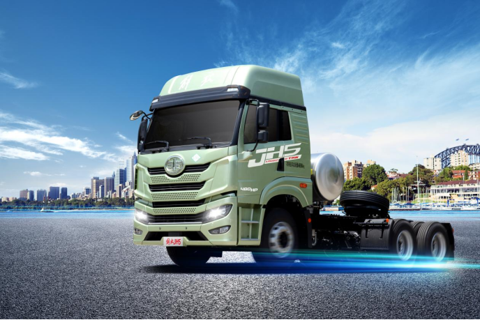 2023年,解放青汽憑借完善的產品布局在天然氣重卡市場一路高歌猛進,其多款燃氣車型也迅速成為爆款,其中,JH5 NG中端牽引車以超群性價比和高效節能頻頻出圈,深得普貨、煤炭、綠通等中長途物流卡友的信賴。