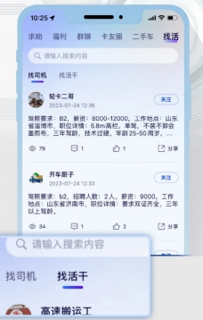 在卡圈兒,經常聽到卡車司機抱怨“活”難找,而車主們則頭疼找不到合適的司機。解放行的“找活”功能可以整合平臺優勢,為車主和司機搭建一個交流平臺,讓招聘與求職變得更加便捷、高效。