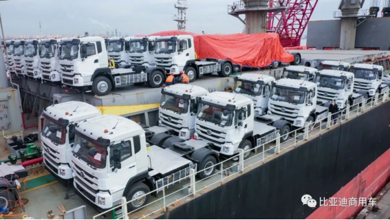 商用車領(lǐng)域,比亞迪新能源大巴和卡車同樣也受到各國(guó)熱捧。