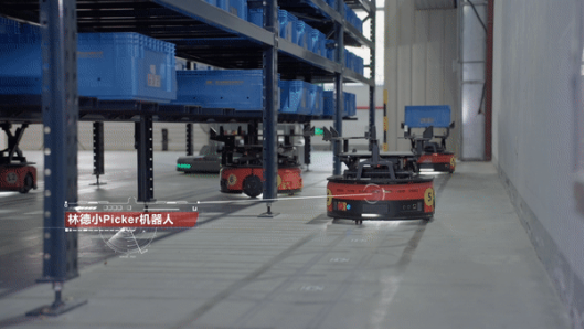 如今,林德通過機器人RSC調(diào)度系統(tǒng)下單指令,動態(tài)調(diào)整行駛路徑,自動化分配任務,實現(xiàn)多機型集群式協(xié)同配送。其中,林德小Picker機器人負責遠距離搬運,在貨架底部潛伏移動,讓搬運高速靈活機動;并通過二維碼精準導航,敏捷地穿梭在貨架與出入庫工作站之間,實現(xiàn)目標貨物的快速送達,提高出入庫效率。