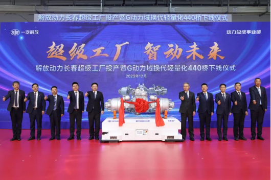 12月27日,解放動力長春超級工廠投產暨G動力域換代輕量化440橋下線儀式在長春工廠車橋新基地隆重舉行。中國一汽總經理助理胡漢杰,長春汽車經濟技術開發區黨工委書記朱光明,黨工委副書記、管委會主任李國輝,黨工委委員、管委會副主任趙德雙,一汽解放總經理、黨委副書記李勝,黨委副書記、工會主席張國華,黨委委員、紀委書記任叢林,黨委委員、副總經理季一志,總經理助理、動力總成事業部黨委書記錢恒榮等領導和長春汽車經濟技術開發區、一汽解放職能部及分子公司相關領導、員工代表、媒體代表共同見證解放又一“超級工廠”投產和“超級車橋”下線的高光時刻。
