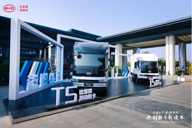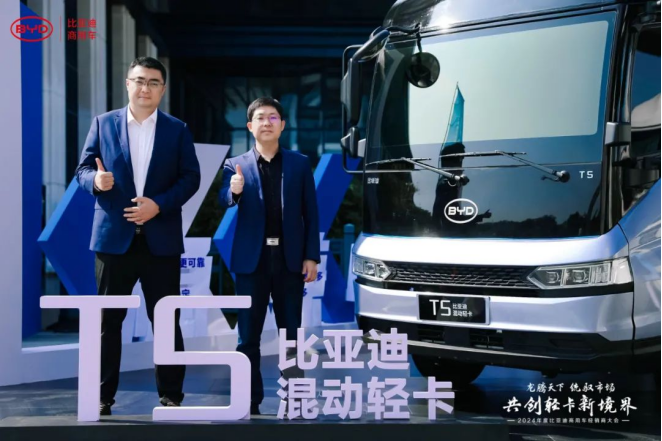 1月10日,“比亞迪全新輕卡T5上市發布暨2024年比亞迪商用車經銷商大會”在深圳隆重舉行。會上,比亞迪正式公布T5官方指導價:T5DM財富版13.98萬元起、T5DM科技版14.78萬元起、T5EV (94度電版)16.98萬元起。憑借“純電+混動”產品布局,輕卡T5系列充分考慮不同用戶需求,滿足城配與城際商品物流運輸,以高性價比、高產品力、高品質力為2024年商用車市場帶來更多、更精準的選擇。