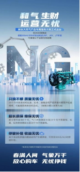 同期,一汽解放適時推出“NG發動機”專屬政策。2023年8-10月期間,購買解放天然氣車的首任車主,享有解放CA6SM4和CA6SM3(CNG)發動機缸體、曲軸、缸蓋、連桿、凸輪軸保質期5年不限里程的專屬服務政策。為選擇解放天然氣車型的用戶提供超長質保、不限里程的感動服務。