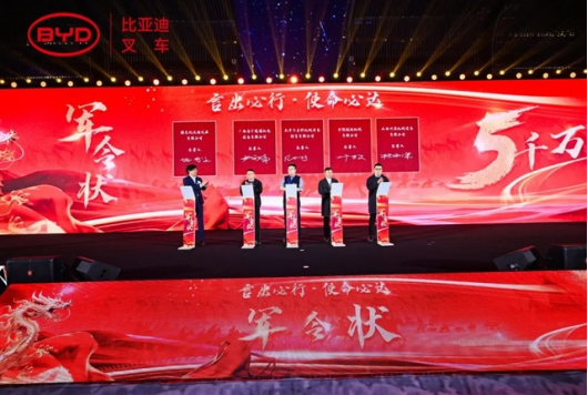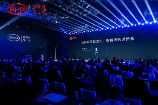 1月18日,以“馳行領越,縱覽新程”為主題的2023年比亞迪叉車經銷商大會在山東青島召開。比亞迪第十八事業部總經理畢國忠先生攜事業部高層領導,以及全國各地的優秀經銷商代表、行業協會、媒體朋友們歡聚一堂,共同展望叉車發展的新未來。