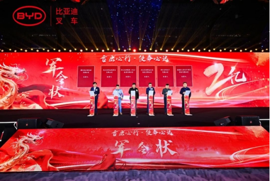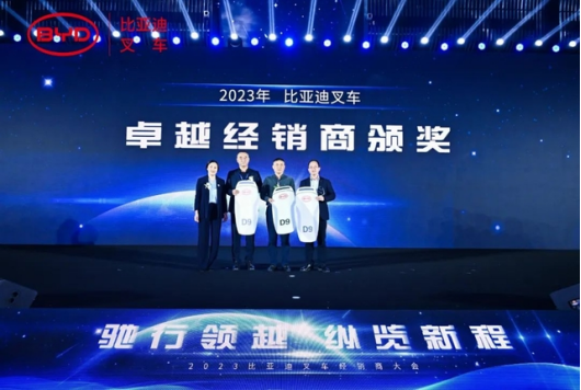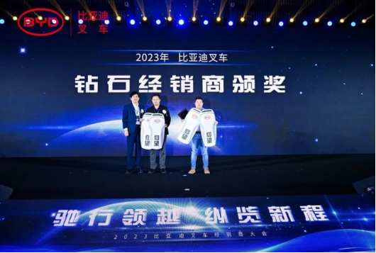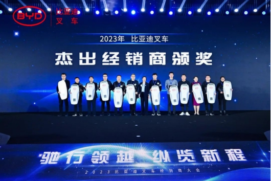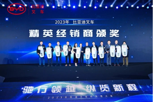 大會同時頒發了非凡經銷商獎、卓越經銷商獎、精英經銷商獎、以及杰出經銷商獎,并對在2023年銷售業績表現突出的優秀經銷商進行了獎勵,以感謝他們對比亞迪叉車發展做出的貢獻。