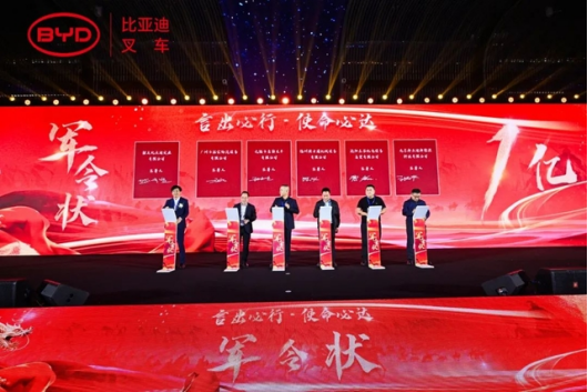 2024年已拉開序幕,在全體與會人員的見證下,畢總與多位經銷商代表共同簽訂了新一年的銷售目標,更加堅定了大家齊心共贏的信念,也預示著比亞迪叉車2024年定將宏圖大展,開啟新的篇章。