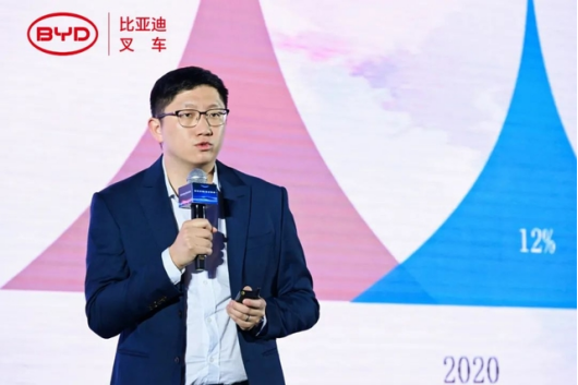 隨后比亞迪叉車研發總監曾石生先生為大家進行了產品規劃和新品解讀。