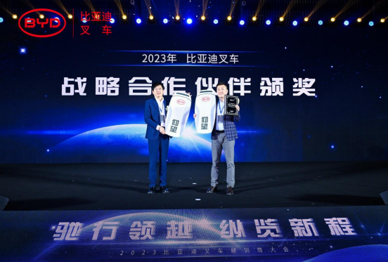 在自動化產線的加持下,比亞迪叉車的產品品質必然會顯著提升,但品質并不代表著銷量,想要獲得更多銷量還需要全國經銷商的鼎力支持。會議現場,比亞迪叉車為感謝經銷商一直以來的支持,向多位經銷商伙伴頒發了獎項。其中,廣州佛朗斯股份有限公司獲得比亞迪叉車頒發的戰略合作伙伴獎;武漢世恒機械設備有限公司、山東景林綠色生態發展有限公司獲得飛躍成長獎;貨叉叉新能源(山東)集團有限公司、武漢世恒機械設備有限公司獲得鉆石經銷商獎。此外,還有比亞迪叉車還頒發了非凡經銷商獎、卓越經銷商獎、精英經銷商獎、以及杰出經銷商獎,并對2023年銷售業績表現突出的優秀經銷商進行了獎勵。